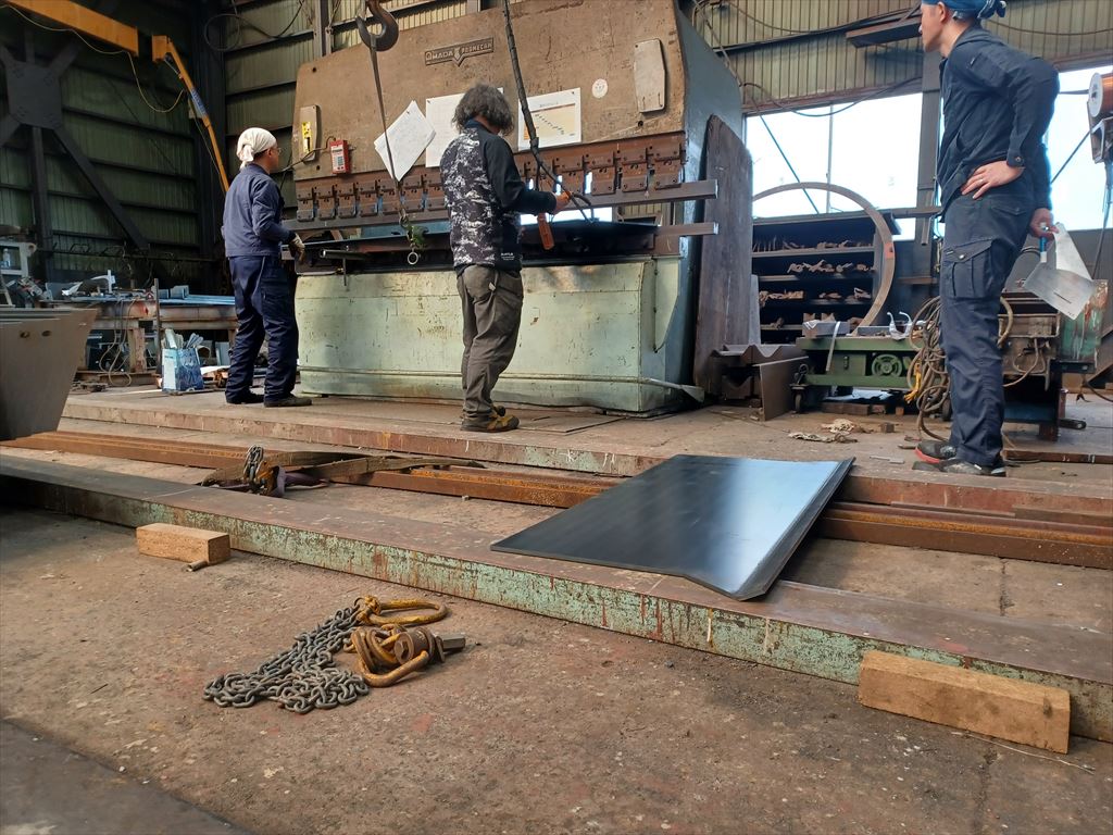 朝イチに入荷した鉄板を型切りした。