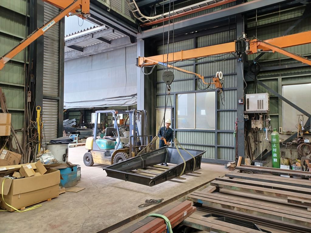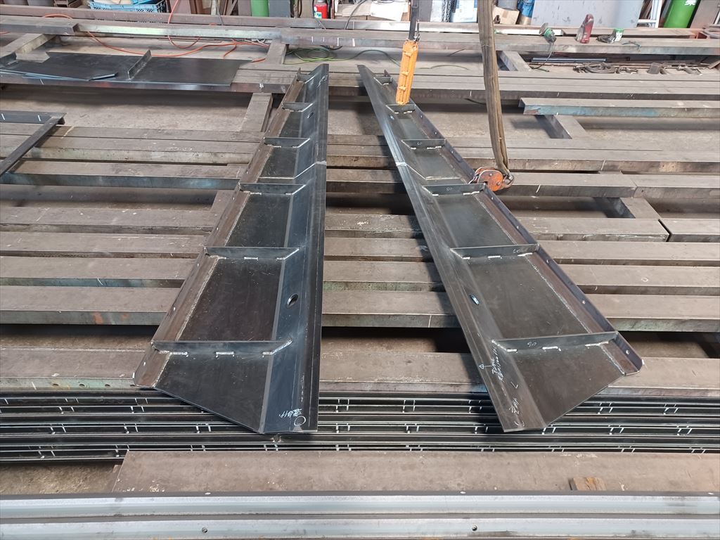 夕方、ホッパ側面にリブを付けている。 |