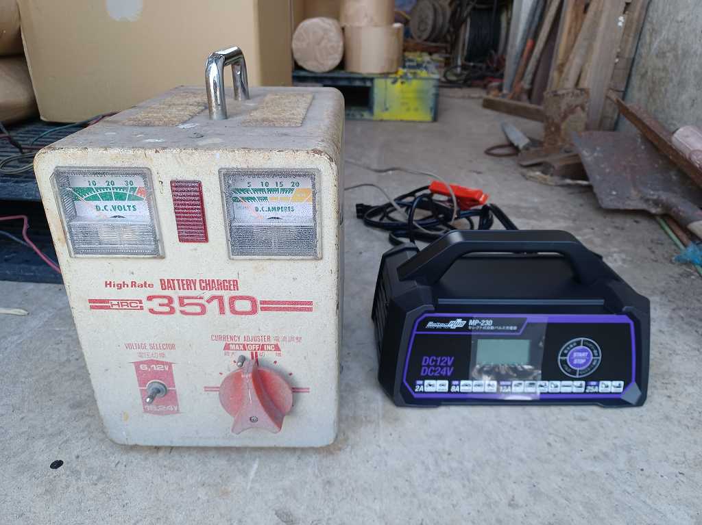 2021.11.29(月) 晴れ 13.0℃ S0 U0.0 W65.50%22.6 127-75-55 本日の滞留円筒 計6本(完成品4本 塗装済0本 錆止済0本 未塗装0本 半製品2本) 本日の出荷 愛知県名古屋市行き 10トン車2台 パルス充電器 ランサーとダイナは売り払ったが、うちにはまだ軽トラとエルフが残っている。 めったに使わないのでバッテリーが上がらぬよう、お嫁ちゃんが定期的にエンジンを掛けることになっている。 ところが今月、天候が悪かったので手抜きしたらしく、エルフ、軽トラと連続してバッテリー上がりを起こした。 すぐに手持ちの充電器で充電はしたものの これが毎度悩みの種だ。 過充電が怖いので適当な時間で切り上げるのだが、どのくらい充電できたかはまったく闇の中だ。 というわけで、この際思い切って満充電になると自動的に停止する充電器を購入することにした。 しかも、パルス充電でサルフェーション除去機能があり、劣化したバッテリーが復活するらしい。。。 ま、そりゃなかろう。 セルモーターの始動電流は200Aぐらいになるので、25A程度の能力ではセルスタート機能もあり得ない。 |