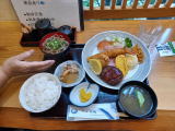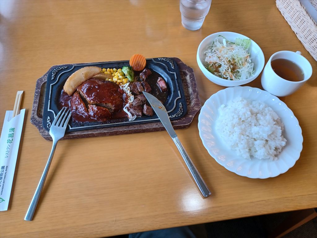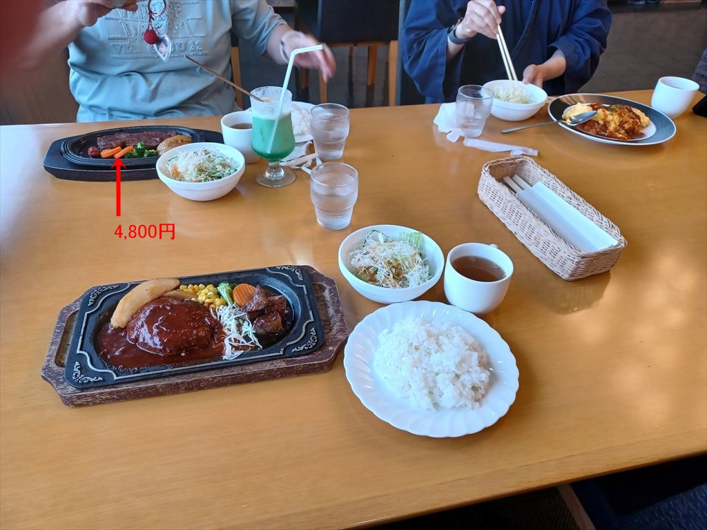 前回は営業再開祝いで三人とも能登牛ステーキ4,800円を張り込んだ。 しかしたかが日曜日の昼ご飯で五千円(コーヒー含む)はあまり居心地がよくない。 定常運転に戻してサイコロステーキにしようと思ったが、オーストラリア牛は筋を噛み砕くのに難儀することがある。 腸閉塞が怖いσ(^_^)は噛み噛みごっくんは出来ないので、やたら時間が掛かってしまって最後は冷たい料理を食べることになる。 保険を掛ける意味で、ハンバーグとサイコロステーキのコンボ定食1,980円にした。 |