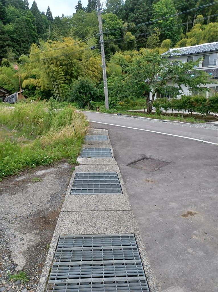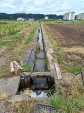 この暗渠は農道を斜めに横断し、その先の市道も横断する。 |