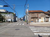 飯田町交差点から桟橋方向へ歩を進めて振り返ってみる。 海を背にしてここから見える家並みの、いったい何軒が解体を免れるだろうか。 この道の真ん中は今町と南町、あるいは今町浜と南町浜との境界線で、何々通りと言う名前があるとは聞いていない。 |