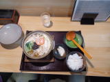 σ(^_^)は今日を乗り切ると、半年間腸閉塞なしの記録が掛かっているので一切冒険は出来ない。 無難なところで、なべ焼きうどん1,300円にしたが、帰って来てからメニューを見ると、ジャンルが季節物になっていた。 お店の人からは特に何も言われなかったが、七月になろうとしているのに、鍋焼きうどんは趣味が悪かったか。 |
