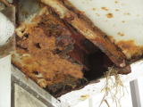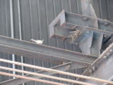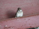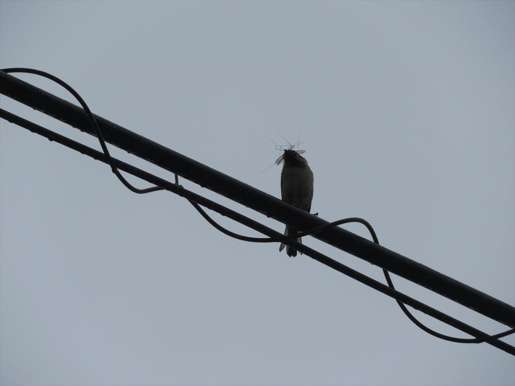 親鳥を見るまでは何者かはわからないな、と思っていたら、何度か見に行くうち、親鳥に遭遇した。 スズメが大きなガガンボを咥えている。 現在の入居者はスズメだと判明した。 巣立ち間際だと思っていたが、まだ餌を運んでいる段階だったか。 しかし雛の成長で親鳥が入るほどのスペースはなくなったと見えて、嘴だけ突っ込んで餌を渡していた。 目ざといカラスがスズメの気配を感じて屋根の上に来ていたが、難攻不落とあきらめ、飛び去って行った。 ここは正真正銘の超優良物件かもしれない。 塗装場の屋根裏は超がつくほど優良物件ではなかったのか、見学だけで終わり、その後、出入りしている気配はない。 |