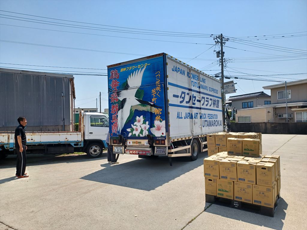 パレット一枚に18箱×3段で54箱乗った。 3パレットと半分くらいあるからざっと180箱ぐらいある。130箱どころじゃない。 あちこち心当たりを当たって見たところ、團ちゃんが通うつばき保育園にワンパレット持って行くことになり、エルフに積み込んでいる。 もうワンパレットは、市内でまだ断水している運送屋の社長が引き取りに来た。 どうもほんとに必要なところへは情報が届いていないらしい。 |