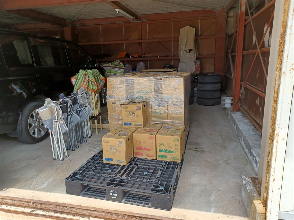 2024.06.01(土) 晴れ 21.7℃ P0 U0.0 W64.35%20.7 123-68-54 本日の滞留円筒 計30本(完成品0本 塗装済13+3+7+2本 錆止済0+0+0+0本 未塗装0+0+0+3本 半製品0+0+0+2本) 支援物資 田鶴浜で閉鎖される避難所へ支援物資として自然水2リットル6本入りが900箱、届くことになったそうだ。 どこか受け入れ先はないか、と珠洲市に打診があり、なぜかうちにもその話が舞い込んだ。 市内の避難所はすでに断水が解消しており、ボトル入り自然水の需要が余りないらしい。 900箱と言うと、一箱が2kg×6本で12kgだから、全部で10,800kg、10トン車一台ぶんだ。 「いいですよ。」などと、うっかり返事したらえらいことになる、シャレにならない量だ。 段ボール箱に入っているので、野外には置いておけず、屋根の下に保管場所を確保する必要がある。 お嫁ちゃんは何かあてがあるようで、どう計算したものかパレット2枚ぶん、おおよそ130箱なら引き取り可、と返答した。 ここか。。。 貧乏くじを引いたのはワゴンRで、水のために車庫を明け渡して、雨曝しの身の上となった。 |