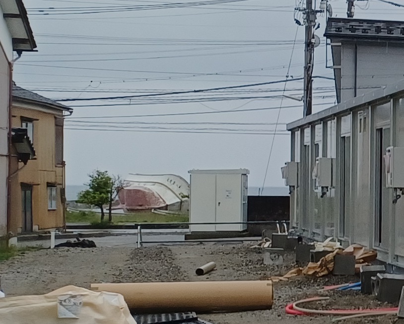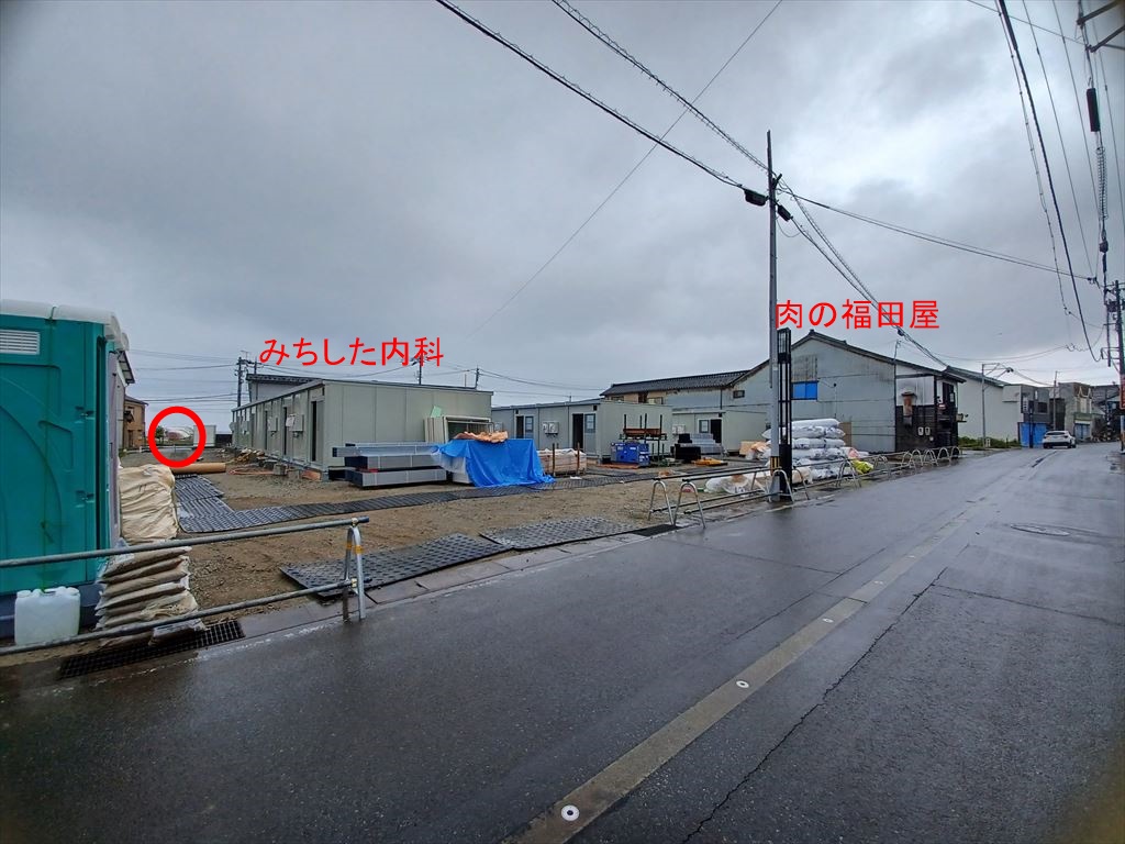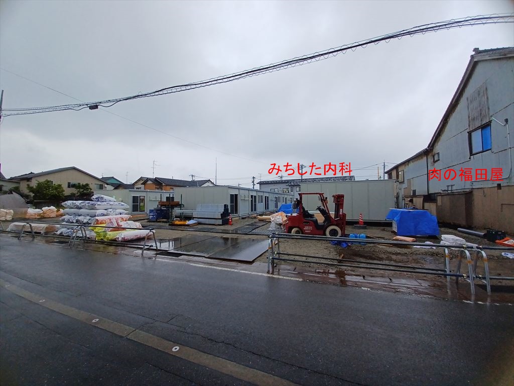 2024.06.02(日) 雨 17.1℃ P0 U3.1 W64.50%20.8 120-66-54 休み 飯田町の仮設住宅 更地になった八木邸跡地に仮設住宅を建設していると言う噂を聞き、にわかには信じられずこの目で確かめて来た。 飯田町にはまとまった空き地がなく、ほかの地区に比べ、仮設住宅の着工が遅れていた。 やっと飯田小学校グラウンドを半分つぶすことが決まったに過ぎない。 |
