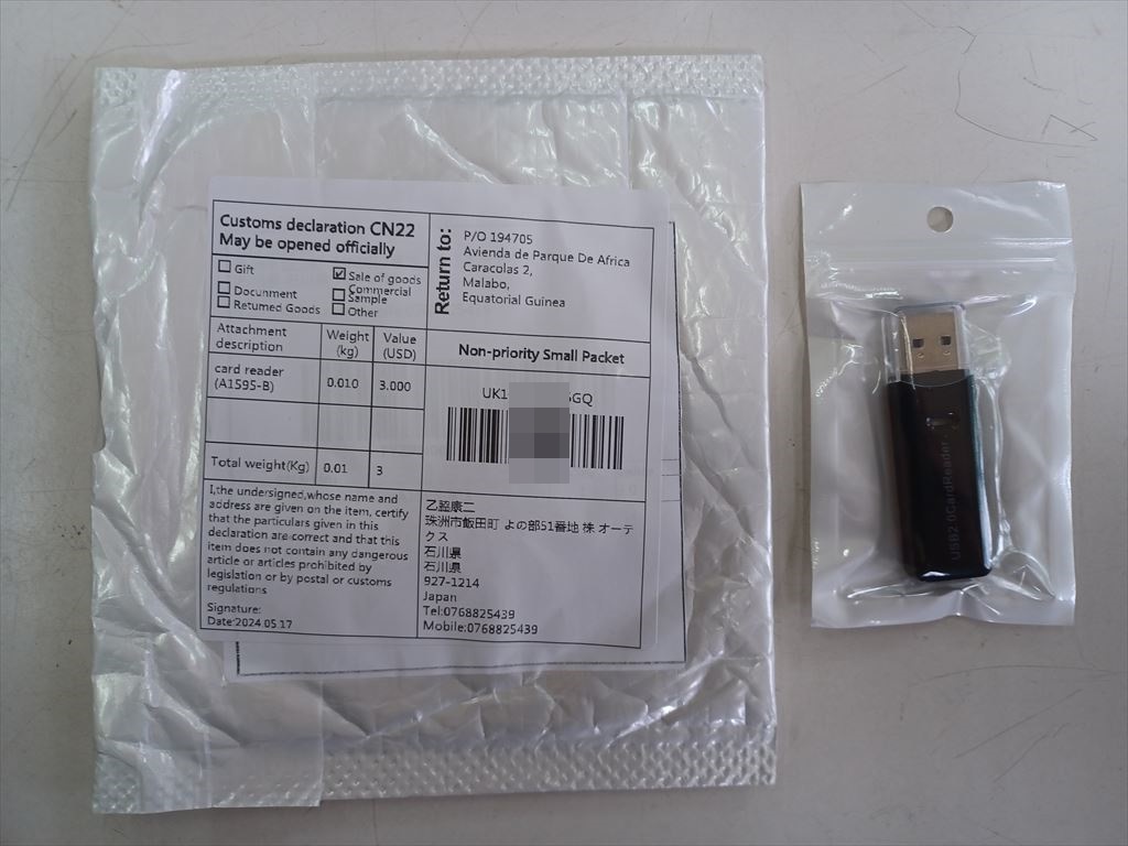 一ヶ月近く掛かって届いた。 予定通り、すっかり忘れていて、いったい何が来たのかと思った。 差出人は書いてないのだが、なにやらアフリカの赤道ギニアを経由して来たっぽい。 地球の裏側まで行って戻って来たのなら、そりゃ時間が掛かるわけだ。 赤道ギニアで作っているはずはなし、Made in 中華をそんなに隠したかったのかねぇ。。。 伝票の下にもう一枚、伝票が見えるのが意味深だ。 マネーロンダリングみたいなもん? |