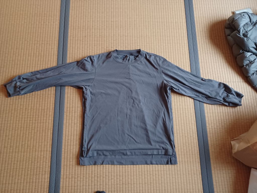 2024.06.06(木) 晴れ時々曇り 21.5℃ P0 U1.0 W64.10%21.0 126-70-57 本日の滞留円筒 計30本(完成品0+0+4+0本 塗装済13+3+3+3本 錆止済0+0+0+0本 未塗装0+0+0+4本 半製品0+0+0+0本) MとL論争決着 半袖エアリズムコットンのサイズは L寸で決着したが、長袖も検証しなければならない。 しかし長袖は現用中で、三枚を使いまわしていると洗濯済みは常に一枚しかなく、比較のしようがない。 一念発起して二日間、ヒートテック無印を着て、エアリズムコットンを三枚そろい踏みさせてみた。 すると、M寸が二枚、L寸が一枚だったことが判明した。 半袖と同じように、Lの上にMを重ねてみた。 着丈はやっぱりL寸が4cmほど長く、胴回りも4cmぐらい大きそうだ。 袖はと言えば、片方で1cmぐらい長い程度で、肩幅も同程度の差なら、腕はL寸もM寸も共通部品と言うことになる。 今さらだが、M寸を着ているときは裾を引っ張らないとズボンに収まりにくいことに気が付いた。 さらにダメ押しとして、半袖は娘も同じ、男物のM寸を着ているそうだ。 さすがに娘よりはσ(^_^)のほうが大きいだろう。 これでエアリズムコットンのベストサイズは、半袖も長袖もL寸と決まった。 買ってしまったM寸はしょうがない、着れなくなるまで使い倒すことにする。 |