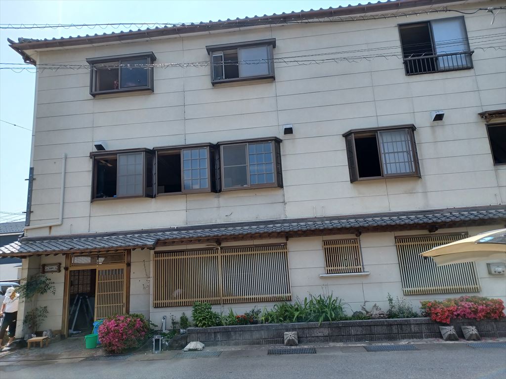 ちょっと見、建物は無事なようだ。 何やら業者が入ってリフォーム工事をしている。 しかし、看板の類が全部取り払われているのは何か違和感を感じる。 再起を期したリフォーム工事の邪魔で外したのか、それとも営業再開を断念して人手に渡したか、謎のまま残った。 |