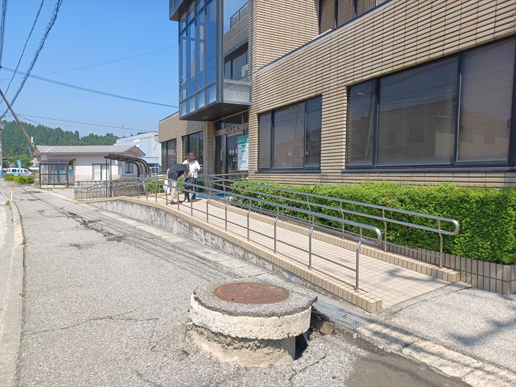 玄関から人が出入りしているので、休診ではなさそうだ。 しかし、この浮き上がったマンホールからすると、下水道が生きているとは到底思えん。 トイレは使えるんかな? 使うほど長居はしないけど。 |