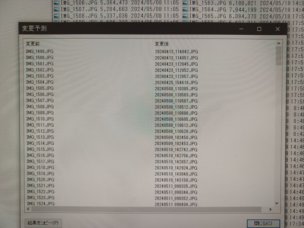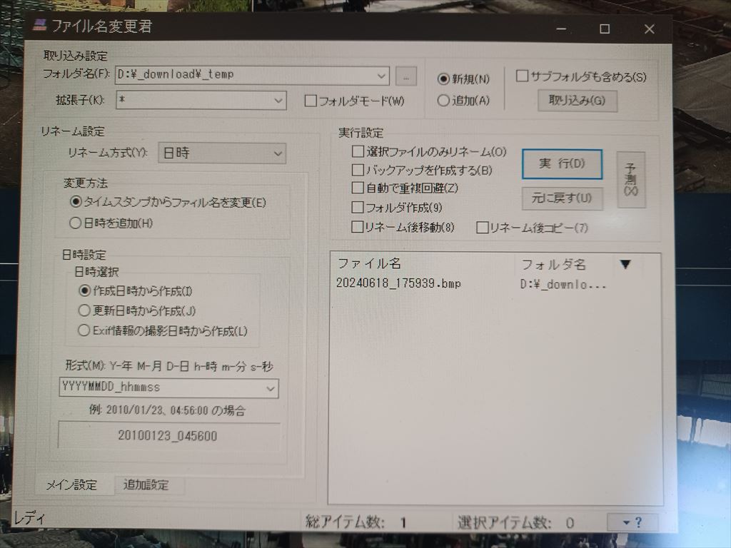 すると、変換後は「出荷クレーン-17.59.30.mbp」が「20240618_175930.bmp」になりますよ、と言う予言が出てくる。 |