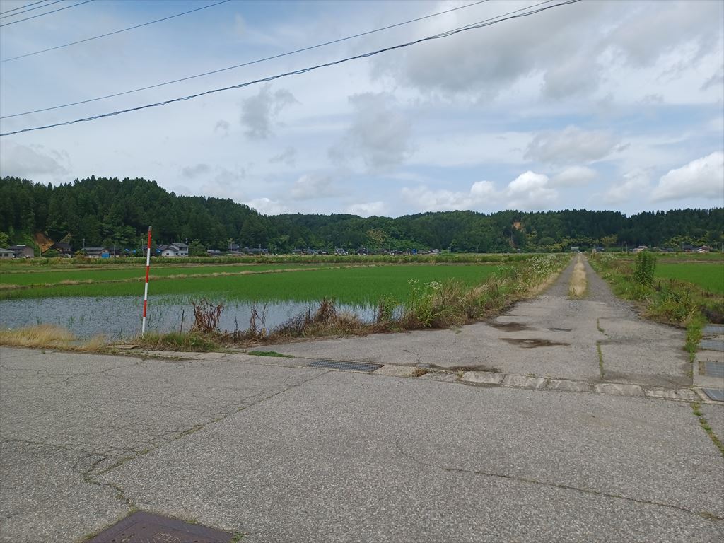 市道をまたぐと景色は一変し、田んぼは田植えが終わっている。 この農道のあっち側は農業振興地域、手前側は振興地域から外れているせいだろうか。 あっち側は一枚の田んぼの大きさも巨大だ。 市道のこっち側が農業振興地域から外れたのは、総合病院がここに移転させて一儲けしようとした市会議員たちの思惑だったと聞いた。 残念ながらこの辺りは地盤が軟弱なため、総合病院は現在の野々江地内に移転となり、強欲市議たちの思惑は外れた。 |