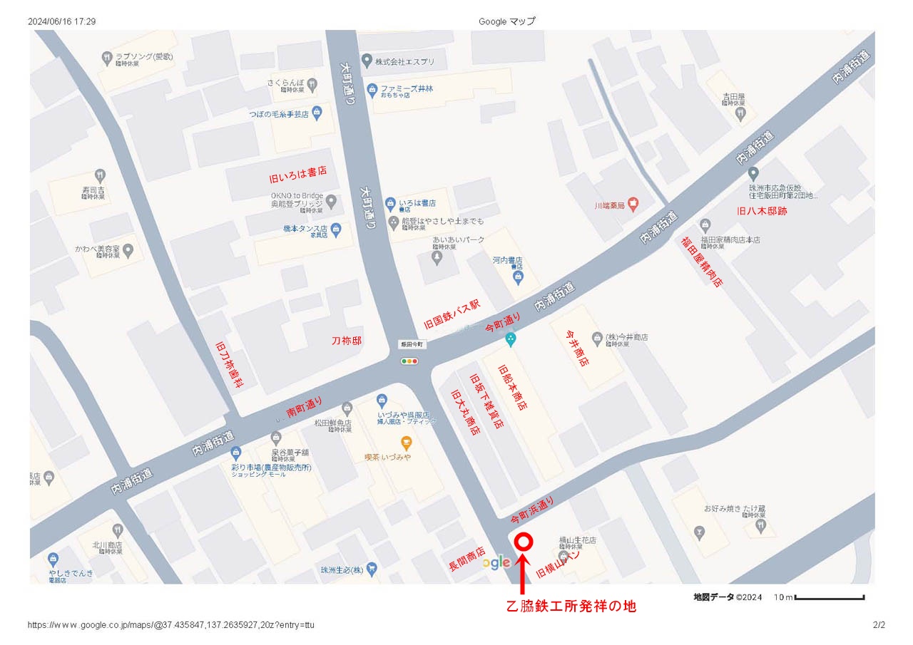 2024.06.29(土) 快晴 28.4℃ P0 U1.1 W64.35%20.3 117-70-56 本日の滞留円筒 計17本(完成品0本 塗装済13本 錆止済0本 未塗装0+1本 半製品0+3本) 本日の飯田町交差点界隈 せわしい仕事の片が付き、今日は開店休業状態だったので、終業時間中に抜け出して散髪に出掛けた。 せっかくなのでちょっと遠回りし、栄町→鍛治町→大町→今町のコースをたどってみた。 大町から飯田町交差点の南町方向を見ると、刀祢邸がきれいに片付いていて、南町商店街が見える。 元旦大地震がなければ、絶対見えるはずのない景色だ。 ひょっとしたらここから海が見える時が来るかも知れない。 |