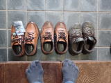 2024.10.09(水) 曇り時々雨のち晴れ 19.2℃ P0 U0.0 W65.50%21.8 120-72-57 本日の滞留円筒 計7本(完成品2+0本 塗装済0+0本 錆止済0+0本 未塗装0+0+1本 半製品0+0+4本) 本日の出荷 新潟県長岡市行き 10トン車6台 4トン車1台 富山県高岡市メッキ屋行き 10トン車1台 仕事用スニーカー更新 昨日、一昨日と、雨の中の積み込みを強いられた。 で、風呂に入るときに気が付いたのだが、五本指の靴下がずいぶん脱ぎにくい。 ひょっとしたら濡れているのかな? どうやら仕事用に使っているスニーカーの耐水能力がなくなっているらしい。 上から見ると特に穴などは見えないが、靴底はボロボロだから、どこからか浸み込んでくるのだろう。 余所行きとして三年、仕事用として三年、合わせて六年も務めたのだから、よくやったと褒めてやろう。 慣例により余所行きの靴を新調し、これまでの余所行きを仕事用にコンバートする。 杜の里イオンで足に合わせ、4,840円で買った革製スニーカーと同じ型番の靴をアマゾンで探したら、6,480円と三割増しになっていた。 三割増しはちょっと癪だが、近頃はインフレの時代だ。 どうせイオンでも値上がりしているだろうし、履きやすい実績がある強みでポチポチっと注文した。 今年の水虫がひどかったのは、雨の日の靴下が濡れていたからかも知れんな。。。 |