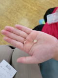 2024.10.15(火) 晴れ 24.7℃ P0 U1.2 W65.50%22.0 133-72-54 本日の滞留円筒 計9本(完成品2本 塗装済0+1本 錆止済1本 未塗装0+2本 半製品0+3本) 乳歯抜けた 熱が下がらない團ちゃんはママに連れられて病院へ行った。 診察を待つ間に、以前からグラグラだった上の前歯二本を、自分で引っこ抜いてしまったそうだ。 左の写真はその時のもので、背景は歯科医院ではなく総合病院。 |