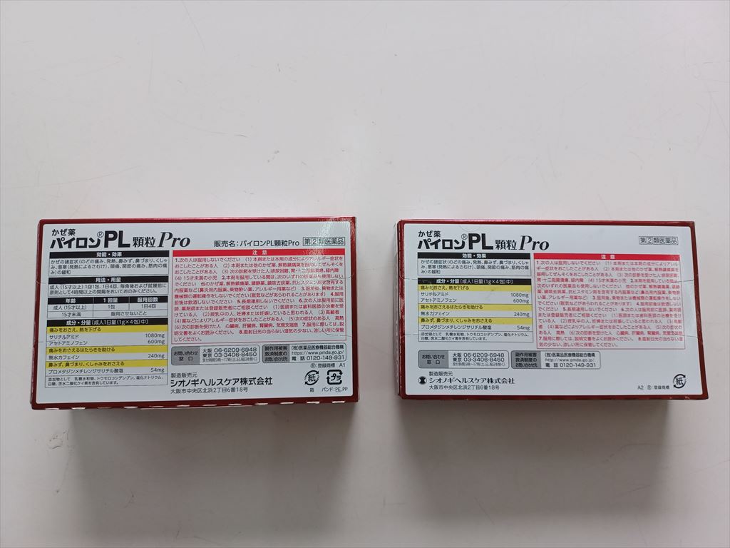 2024.10.25(金) 晴れ 21.8℃ P0 U2.0 W65.85%21.8 127-72-55 本日の滞留円筒 計10本(完成品2本 塗装済0+5本 錆止済1本 未塗装0+2本 半製品0+0本) PL 処方薬同等の風邪薬、PL顆粒Proの残りが少なくなって来たので仕入れることにした。 アマゾンの購入履歴から12包入り三箱をカートに放り込んだのだが、ふと見ると18包入りと言うのもあって、あんまり値段が変わらない。 どちらも三箱購入すると、12包入りが4,360円なのに18包入りが4,660円、明らかに18包入りがお得だ。 アマゾンでは本物の皮を被った偽物も売っているらしい。 なんで12包入りと18包入りの二種類があるのかも疑問でいかにも怪しいが、割安感の強い18包入りに乗り換えることにした。 到着した現物と、手持ちのパッケージを比べて見ても、同じではないが本物としか思えない。 とりあえず本物としておこう。 |