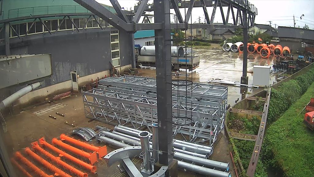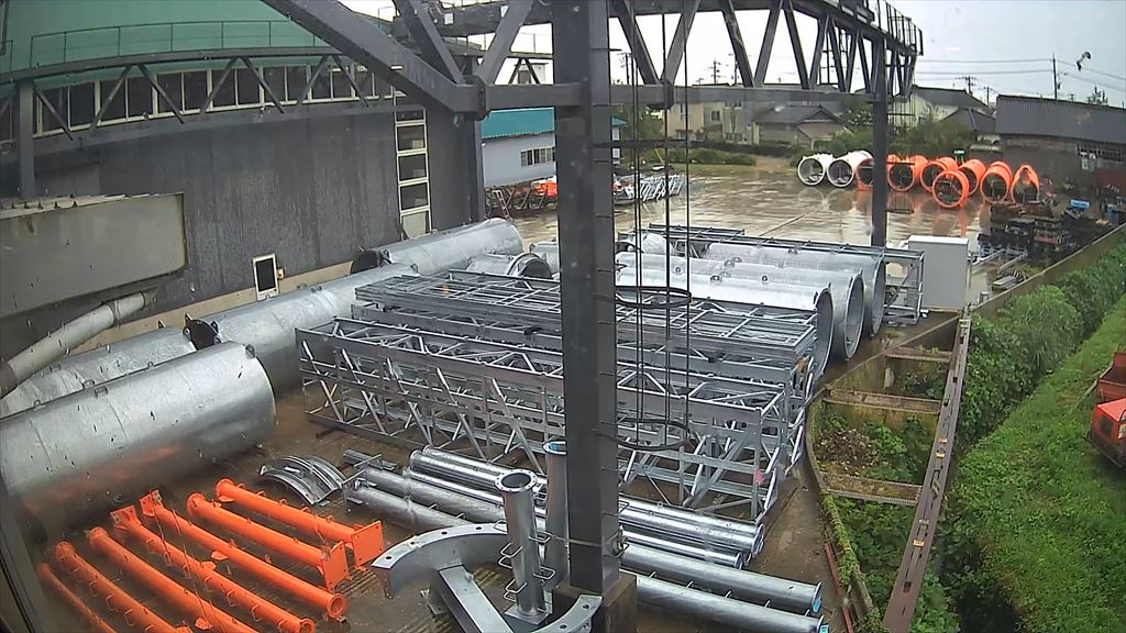 2024.10.22(火) 曇り 17.3℃ P0 U3.1 W65.70%21.9 126-71-54 本日の滞留円筒 計10本(完成品2本 塗装済0+4本 錆止済1本 未塗装0+2本 半製品0+1本) 高い所に地盛 豪雨災害が起きた日から一ヶ月が過ぎた。 元日の大地震で自宅も工場もたいした被害を受けなかったのは運がよかっただけだが、豪雨災害を免れたのは多少人為も加わっている。 今町時代、自宅と工場はたびたび洪水に見舞われ、親父も洪水には懲りていた。 引っ越し先に選んだ土地が川からも山からも離れた田んぼの真ん中で、周囲より少し高くなっているのはさすがに偶然だろう。 大谷方面を見ると、国道が下り坂になっているのがはっきりわかる。 |