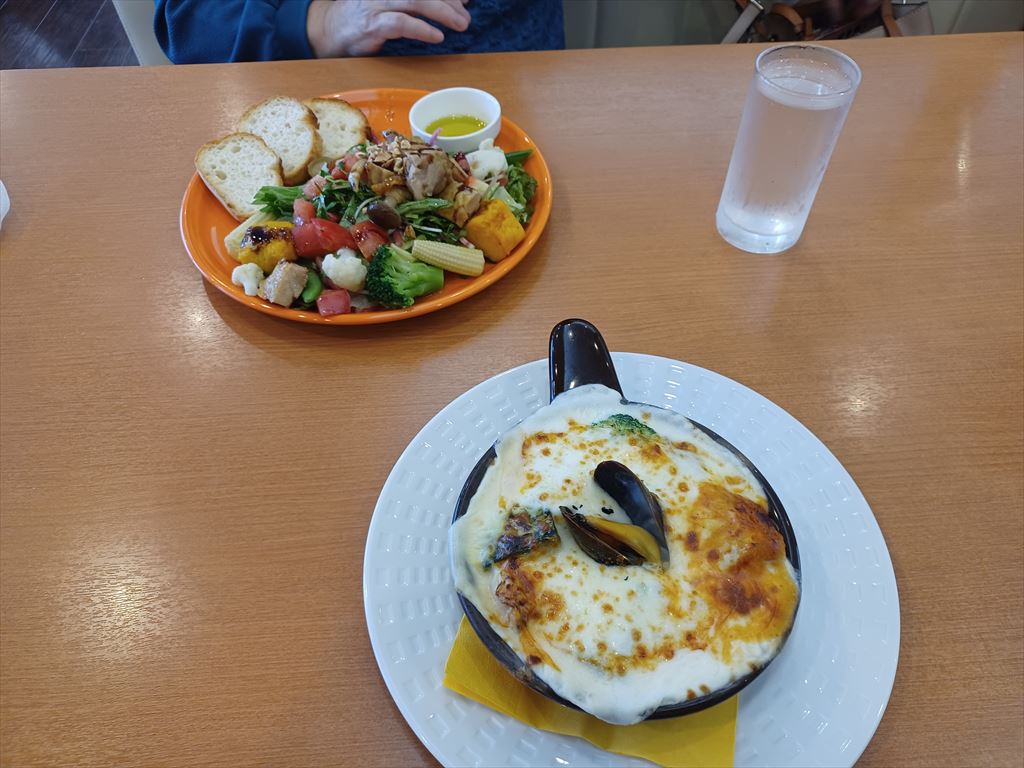 実のところσ(^_^)はココスとはあまり相性がよくない。 息子が富山大学在学中、アパート近くのココスで食べたステーキは固くて最悪だったが、ピザも負けず劣らず固い。 今は腸閉塞になりにくい食材が最優先なので、固いものは論外、パスタもダメ。 となると選択肢ははなはだ狭くなる。 ハンバーグなら安全だが、あいにくとあまり好きじゃない。 ほぼペンギンの一存で「魚介とかぼちゃのあふれクリームドリア¥1,090(税込¥ 1,199)」に決まった。 |