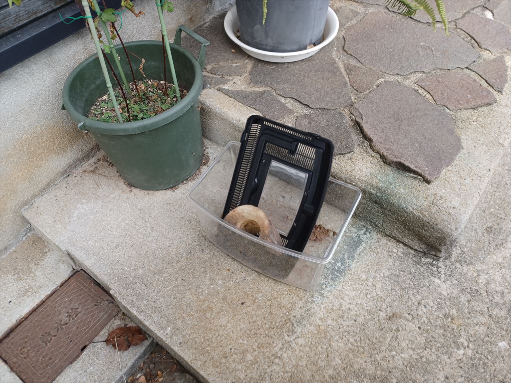 推理を補強する傍証になるかならないか、玄関横に洗って干してある怪しいケースがひとつ。 |
