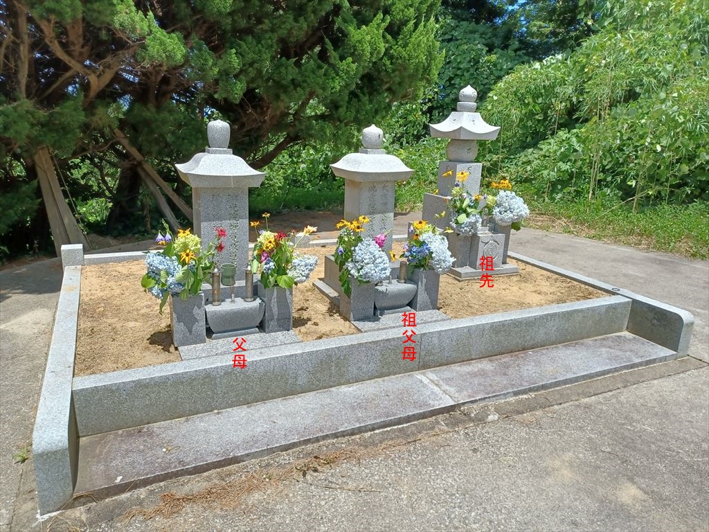 2025.07.20(日) 晴れ 34.1℃ P0 U2.1 W65.70%20.6 108-58-61 休み 三十三回忌 昨日は太右ヱ門末裔の法事だったが、今日はペンギン父の三十三回忌だ。 真宗に比べ、禅宗の法事はお経が倍ぐらい長いので嫌いだが、ペンギンの杖代わりでしょうがない、参加した。 正座しての法事なら拷問だが、今回は椅子を使わせてもらったので思ったより楽だった。 逆に、坊さんが正座していたのは見ていて気の毒だった。 先代の坊さんが存命だったころは、σ(^_^)たちだけ正座で、自分は椅子に座っていたのに。 ペンギンの実家の墓は家の近くだが、ちょっとした坂を登らなければならない。 転ぶと大事に至る恐れがあるので、ペンギンは昨年の暮れから大事を取って墓にお参りしていない。 今日はσ(^_^)が手を引いて、半年ぶりの墓参りとなった。 我が家の墓を建てるにあたって、多少なりとも墓について研究したことがある。 その本では父母の墓、祖父母の墓、先祖の墓の三基を建てるのが最良と書いてあった。 ペンギン実家の墓は近頃では珍しい本格派と言えよう。 代が替われば順送りに右の方へ移動するので、墓の数は増えず、合理的でもあるだろう。 |