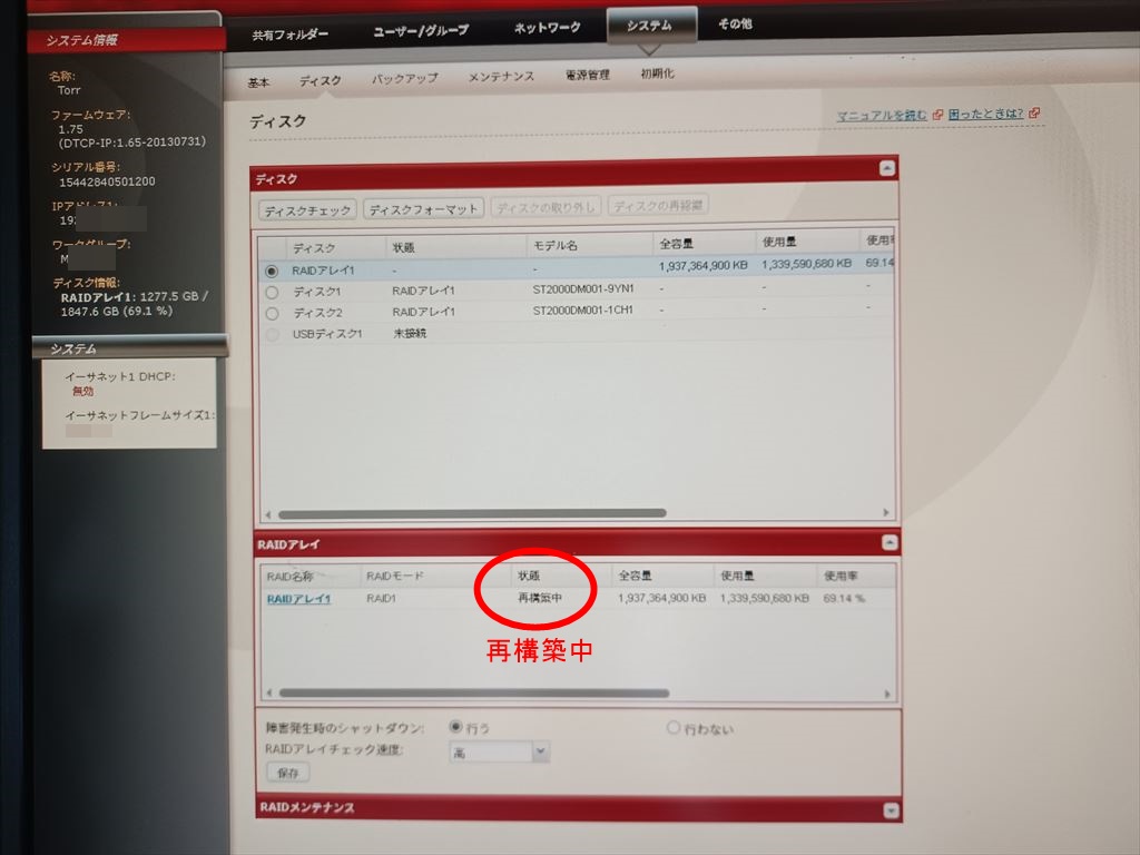 2025.07.30(水) 晴れ 33.9℃ P0 U5.0 W65.55%20.6 105-61-58 本日の滞留円筒 計23本(完成品10本 塗装済0+7+1本 錆止済0+0+1本 未塗装0+0+3本 半製品0+0+0+1本) Torr増量計画 業務用のデータが全部入っているファイルサーバのTorrが死んだ、と大騒ぎしたのはつい先日のこと。 落ち着いて考えてみれば、HDD(ハードディスク)2台でミラーリング(RAID1)しているのだから、片方動いていれば仕事はできる。 なにも慌てふためかなくても、片方が壊れてから新しいHDDを手配しても充分間に合ったのだ。 それより、2TB(テラバイト)の容量のうち、70%が使用済みになっていることに気が付いた。 1TBから2TBに増量したときは、これでもう今後10年は大丈夫、と思ったんだが、指折り数えるとほんとに10年経っている! NASの増量はおおごとになるので、盆休みに向けてそろそろ準備しなければならない。 とりあえず、一万円でお釣りがくる4TBにすればこの先10年は安泰と思われたが、σ(^_^)御用達のツクモでは各メーカーがことごとく売り切れだ。 次の選択肢は1万4千円ほどの6TBだが、長年の調査によると、容量が3の倍数のドライブは市場から早く退場する傾向があることがわかっている。 壊れたときにはすでに市場になく、入手できない恐れがある。。 6TBに14,000円出すくらいなら、と17,811円のWD(ウェスタン・ディジタル)の8TBに決めた。 アホのトランプを応援するようで釈然とはしないが、唯一の国産メーカー、東芝製の8TBがやたら高かったので。(^^;) |