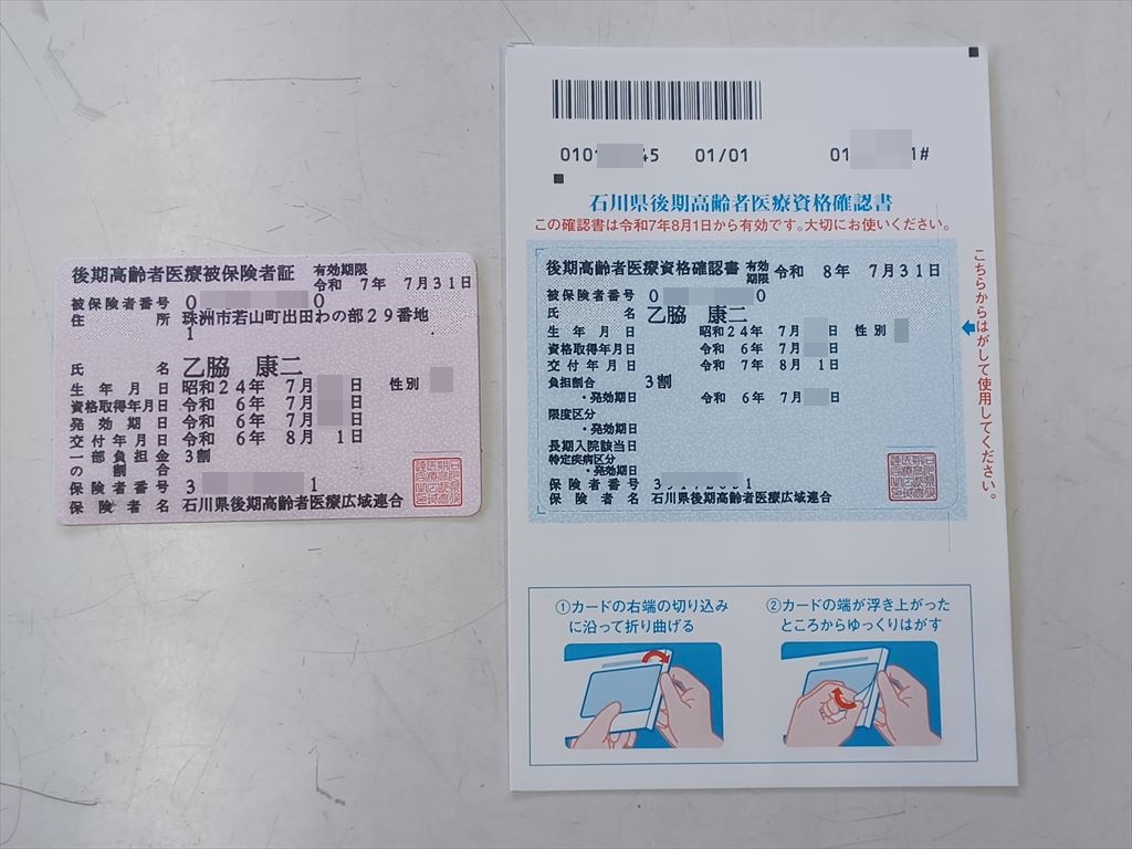 2025.07.23(水) 晴れ 34.1℃ P0 U2.1 W65.40%20.4 114-66-61 本日の滞留円筒 計28本(完成品6+10本 塗装済0+0+6本 錆止済0+0+0本 未塗装0+0+1+2本 半製品0+0+0+3本) 医療資格確認書 新しい健康保険証が届いた。 はて、健康保険証は今年の12月2日以降は無効になり、マイナ保険証に一本化するんじゃなかったのか? 保険証の有効期間が切れる今年の8月末から12月1日までの継ぎかな? それなら有効期限が2025年12月1日になっているだろうと思えば、令和8年7月31日になっている。 令和8年と言うと、、、来年じゃないか。 後期高齢者は別枠か? さっぱり理解できず、なおもしげしげと眺めていたら、保険証とは書いてないことに気が付いた。 いま持っているピンクのカードの正式名は「石川県後期高齢者医療被保険者証」で、間違いなくいわゆる健康保険証だ。 ところが今日来た水色のカードには「石川県後期高齢者医療資格確認書」と、似て非なるものになっている。 保険証ではないから廃止の対象にならないのか! と言うわけで、いつまで経ってもマイナカードは唯一無二とはならず、あってもなくてもいい存在であり続けることになる。 |