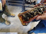 2025.10.09(木) 晴れ 22.1℃ P0 U5.0 W65.35%23.0 100-61-61 本日の滞留円筒 計22本(完成品13本 塗装済0+6本 錆止済0+1本 未塗装0+0本 半製品0+0+2本) 天井クレーン止まる 仕事が終わってから、たくさんある天井クレーンのうちの一台が、突然北の方向だけ操作不能になったと言う報告があった。 軽いものがほとんどない鉄工所では、クレーンが生殺与奪の権限を持っていて、動かないと全く仕事ができない。 ラジコンは別の話になるが、有線でぶら下がっている操作スイッチ(ペンダントスイッチと言う)の場合、最初に疑うのは断線だ。 ケーブルはペンダントの出口で常にコネコネされるので、被覆の中で銅撚り線が断線しやすい。 断線している電線を強く引っ張ると被覆が伸びて来るのですぐわかる。 これなら応急修理ができるが・・・どれだけ引っ張っても切れている気配はなかった。 操作ケーブルの全取替となると高所作業になるので、電気屋に来てもらわなければならず、すぐには使えない。 高いところはからきしダメだから、なんとか得意の地上で修理できないかな。。。 ダメ元でスイッチの接点を調べてみることにした。 スイッチは上下東西南北の六個があり、動作しないのは一番下の北だけだ。 一番下はケースに水が入るとどっぷり浸かったりして、とかく動作不良を起こしやすい。 祈るような気持ちでスイッチを外してみると、北スイッチの接点に綿埃が詰まっていた! これも一番下ゆえの不具合だ。 ホコリを取り除いて一件落着、クレーンは生き返った。 耳が聞こえなくなって、耳鼻科で巨大耳クソを取り出してもらったときを思い出した。 |