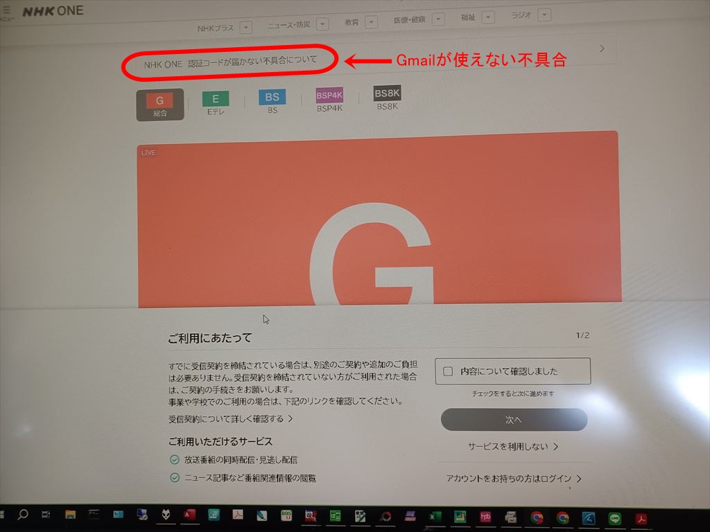 ところがスマホで同様にNHK+を起動すると、登録画面が現れた。 NHK+で登録してあるメアドにNHKから六桁の認証コードが送られてくるそうだ。 ちょっと一手間増えるが特に問題なさそうだ、と思ったら、認証コードが待てど暮らせど届かない。 現在NHKからGmailに送信できない不具合が発生しているそうだ。 なんじゃそれ。ダメじゃん。。。 と言うわけで、スマホでは見れないことになったが、パソコンでは見えるので、まあいいか。 どうせスマホでNHK ONEを見ることはないだろうし。 |