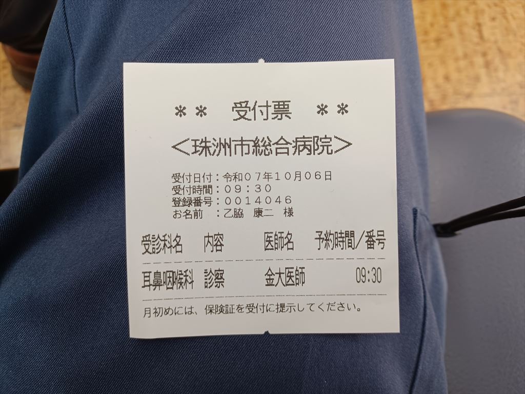 再診受付は予約ギリギリの9:30だった。15分で自宅と総合病院を二往復できた。 玄関で9:300だから、耳鼻科の診察開始には間に合わなかったかと思ったが、こっちもギリギリ間に合っていたようだ。 二人目ぐらいに呼ばれた。 |