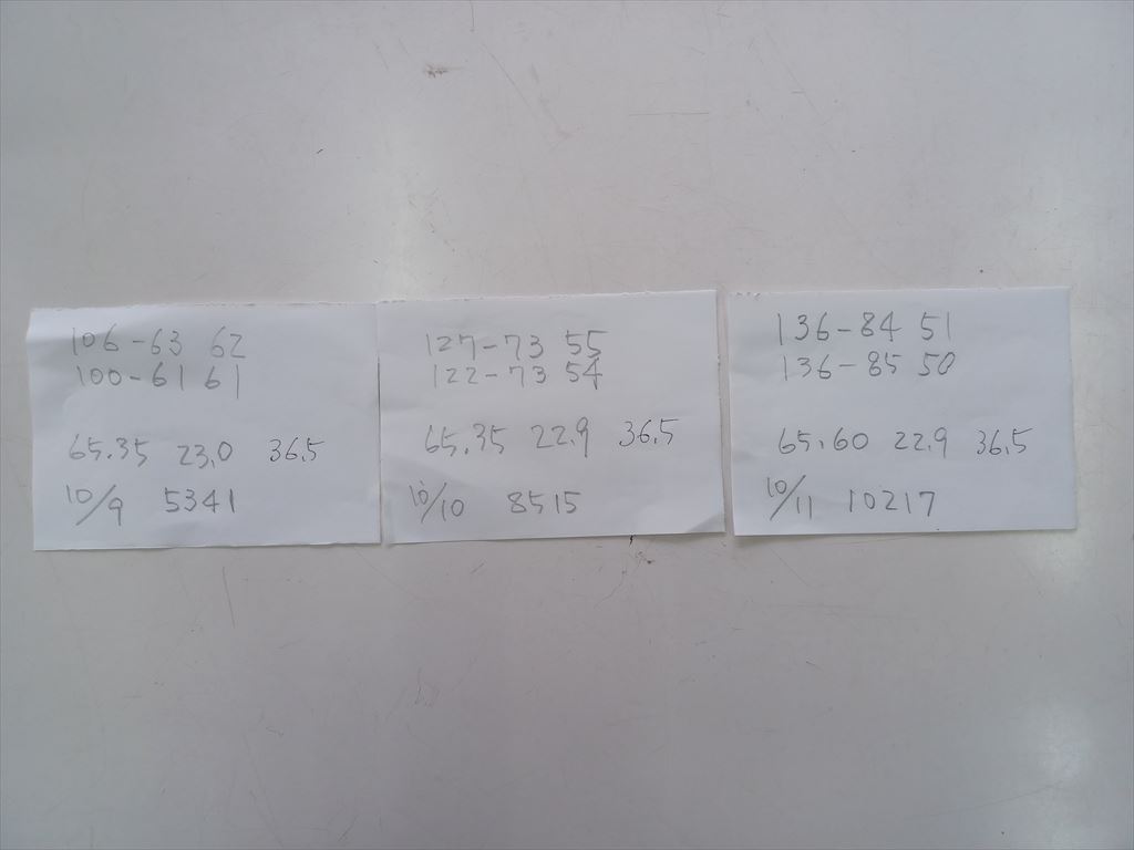 寒くなるとてきめんに血圧が上がってくる。 左のメモは上二行が血圧と脈拍数、三行目は体重、体脂肪率、体温で、一番下は日付と前日の歩行数だ。 どれも毎朝寝起きに測っているが、血圧は一昨日までは高いほうでせいぜい100そこそこだったのに、昨日は122でギリギリ正常だ。 そして昨日より寒い今日は136だから、すでに高血圧予備軍に入っている。 そしてますます寒くなる11月の第一土曜日がミニドックの日なんだよな。。。また ▲ だ。 |