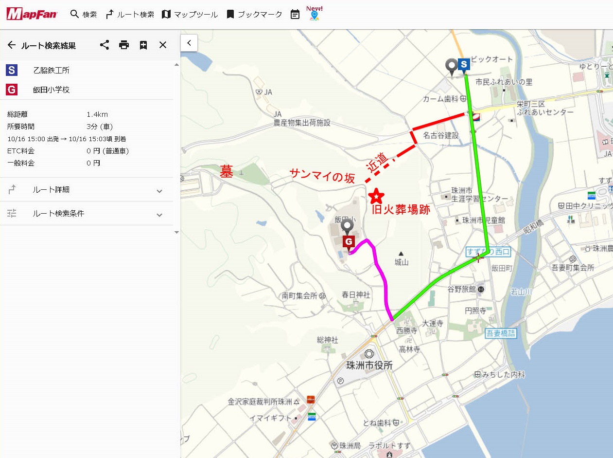 日曜日は脚色なし、ありのままだ。 市内のレストランでランチを食べたあと、おくのといちと大丸で買い物して帰る周回コースは時間と距離以外はまともな回答だ。 せっかく地図で二点をマークしているのに距離は計算してくれず、おくのといちまでの距離はMapfanで計測しなければならなかった。 市内の移動はどこからどこであろうと2qにした。 |