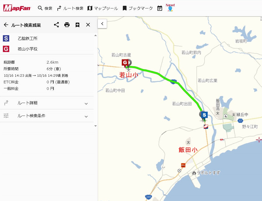 飯田小学校まで、回り道をしてもたった1.4qだ。 がんばれ 榮一郎! お父さんが子供の頃、若山小学校まで片道2.6qの道を、一年生のときから歩いて通ったぞ。 |