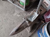 な〜に、嘆くほどのことはない。 このぐらいの曲がりなら、アンビルの上に置いてハンマーで二つ三つ叩けば簡単に直せる。 うちの生業(なりわい)の始まりはそもそも鍬や鎌を作っていた鍛冶屋だぞ。 鉄工所にはアンビルの一つや二つは当たり前に転がっているのだ。 直すのは簡単だが、この鍬をどう使ったら刃先がこんなふうに内側へ曲がるんだ? |