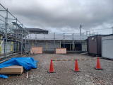 ところが今日、まだ竣工には程遠いのに、現場には人っ子一人いない。 日曜日ならともかく、土曜日に誰も来ないのは、例の働き方改革ってやつか? あるいは、とうてい間に合いそうにないとあきらめた? 誰もいないのを幸い、ちょっと中を覗いてみるか、と思ったが、結界のとんがりコーンが置いてある。 置いてある道具でも紛失すれば犯人扱いされるから、ここは李下に冠を正さず、が無難だ。 |