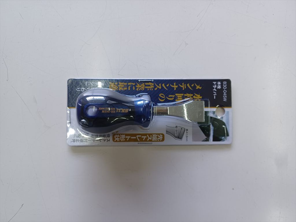 なるほど刃先の幅は止水弁にちょうどいいが、刃先が滑りやすく、すぐに溝から外れてしまい、あまり使いやすくない。 いままで使っていたマイナスドライバーより握りの直径が小さいので力も入らない。 とはいえ、止水弁の溝を舐めてしまう恐れは若干減るだろう。 |
