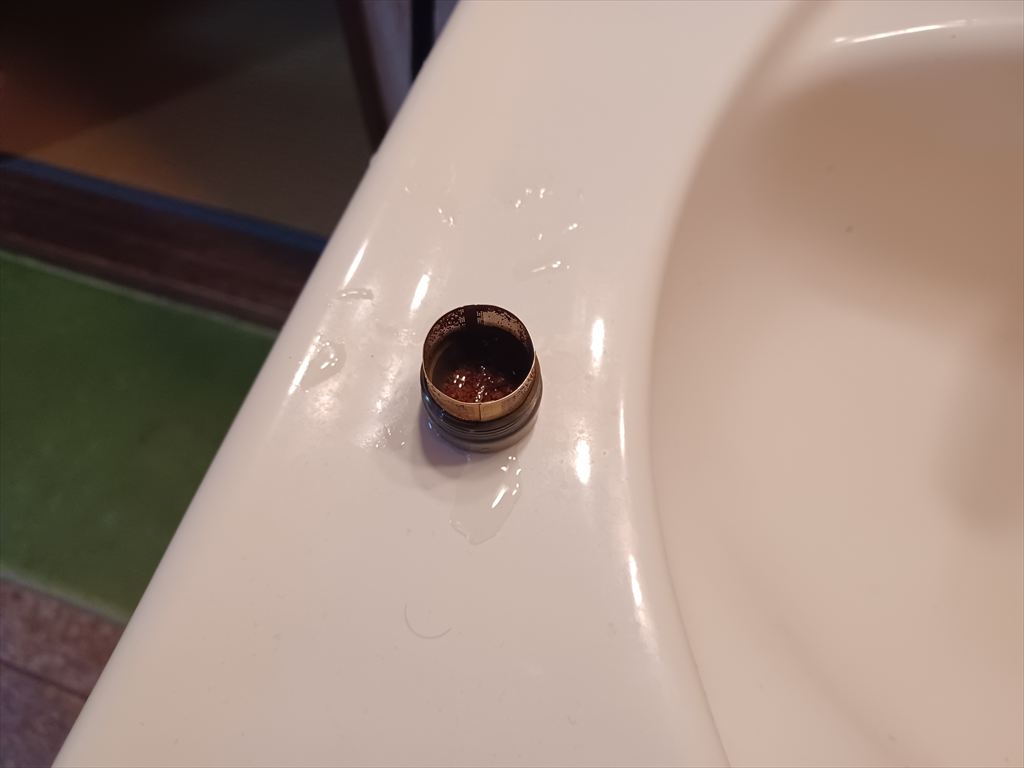 艱難辛苦の末にやっと外したフィルター。 赤錆が溜まっているが、フィルターの目を埋めるほどでもない。 清掃したあと、元の鞘に収めた。 フィルターを外す前とあとで洗浄水が止まるまでの時間を測って見たら、どっちも3分強で有意差はなかった。 通常の洗浄時間は20秒ぐらいだそうだ。(-_-;) 水が出なくなるような状況にならない限り、もう二度とフィルター掃除はしないことにした。 |